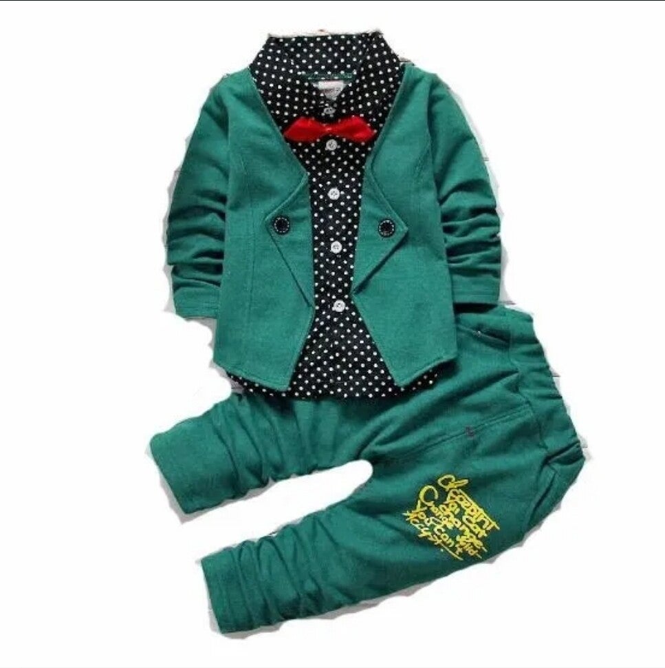 Outfit voor jongens 1 tot 2 jaar kleur Groen boven kleding en onder kleding in deze set.
